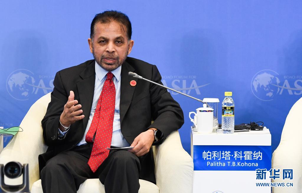 4月19日,斯里蘭卡駐華大使帕利塔·科霍納在“21世紀海上絲綢之路島嶼經濟”分論壇上發言。新華社記者 楊冠宇 攝