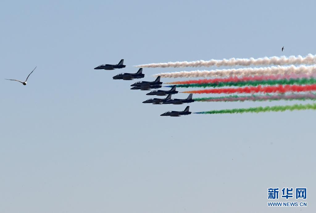 4月25日,意大利“三色箭”飛行表演隊在羅馬舉行的紀念儀式上噴出代表意大利國旗顏色的紅白綠三色煙霧。