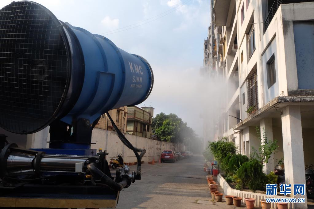 5月6日,在印度加爾各答,市政人員進行消殺工作。