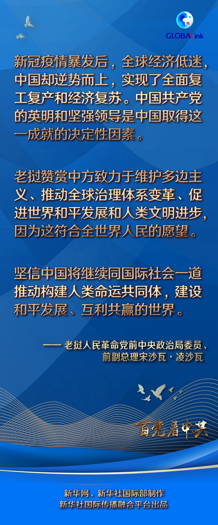 新華社萬(wàn)象5月12日電 “武漢抗疫初期,這座擁有千萬(wàn)人口的大都市突然安靜下來,人們嚴(yán)格按照要求居家隔離。當(dāng)時(shí)正值春節(jié),武漢人民放棄了走親訪友的傳統(tǒng)節(jié)日習(xí)俗,聽黨話、跟黨走,這充分反映了中國(guó)人民對(duì)中國(guó)共產(chǎn)黨的高度信任。”老撾人民革命黨前中央政治局委員、前副總理宋沙瓦·凌沙瓦日前接受中國(guó)媒體采訪時(shí)說。