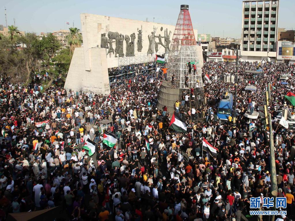 5月15日,人們在伊拉克首都巴格達(dá)舉行抗議示威活動(dòng),聲援巴勒斯坦民眾。