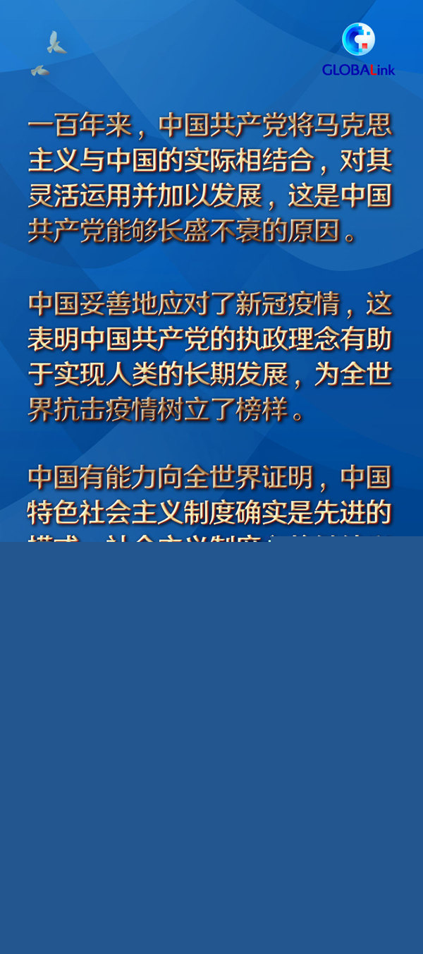 在祝賀中國共產黨成立100周年的同時,索科爾也希冀中國繼續發展,中國人民在中國共產黨的領導下取得更大成就。他相信,中國有能力向全世界證明,中國特色社會主義制度確實是先進的模式,社會主義制度必將繼續興盛。