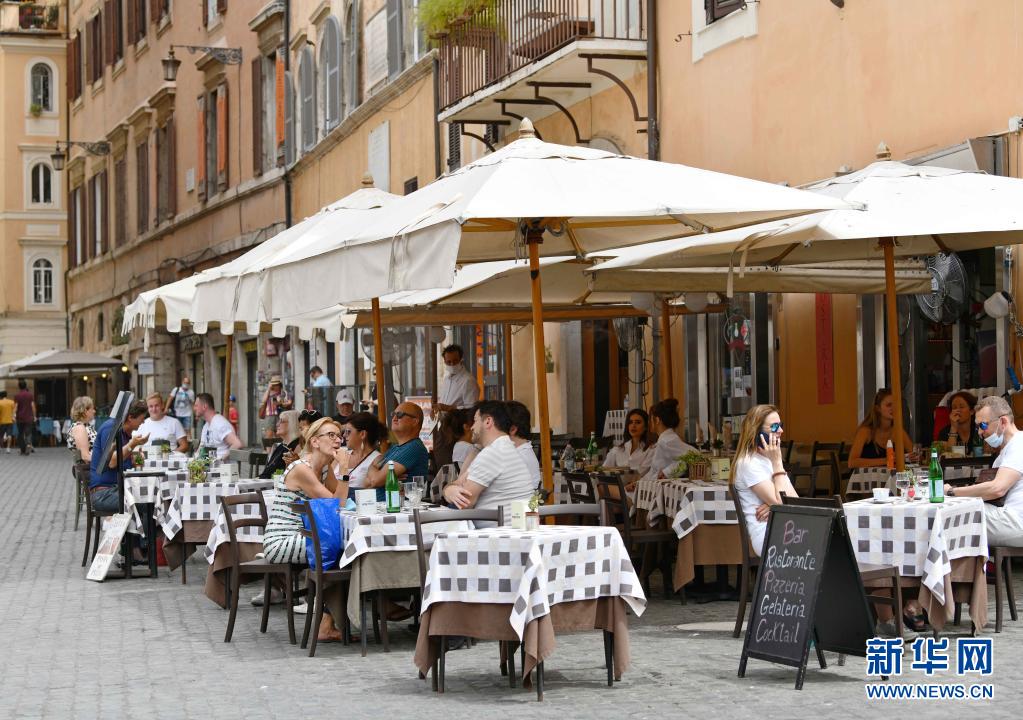 6月24日,人們在意大利羅馬一家餐館的戶外區域消費。