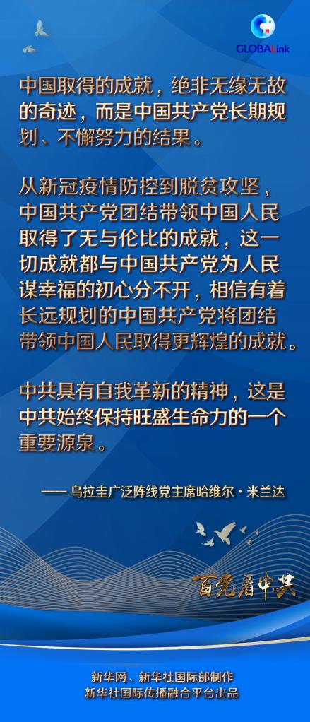 米蘭達說,從新冠疫情防控到脫貧攻堅,中國共產(chǎn)黨團結(jié)帶領(lǐng)中國人民取得了無與倫比的成就,這一切成就都與中國共產(chǎn)黨為人民謀幸福的初心分不開,相信有著長遠規(guī)劃的中國共產(chǎn)黨將團結(jié)帶領(lǐng)中國人民取得更輝煌的成就。