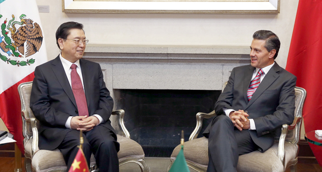 應墨西哥參議長巴爾沃薩和眾議長奧雷奧萊斯的邀請,全國人大常委會委員長張德江25日至26日對墨西哥進行正式友好訪問,在墨西哥城會見墨西哥總統培尼亞,與巴爾沃薩和奧雷奧萊斯分別舉行會談。[詳細]