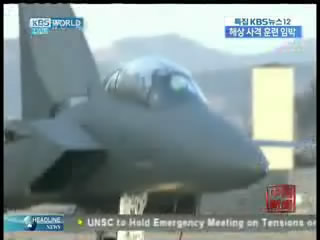 世宗大王號驅逐艦F-15K戰機備戰狀態