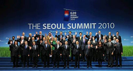 2010年11月,二十國集團第五次峰會在韓國首爾舉行。會議通過了《二十國集團首爾峰會宣言》。與會各方就“首爾行動計劃”達成共識,同意通過采取全面、合作和各自的政策行動,推動共同目標的實現。