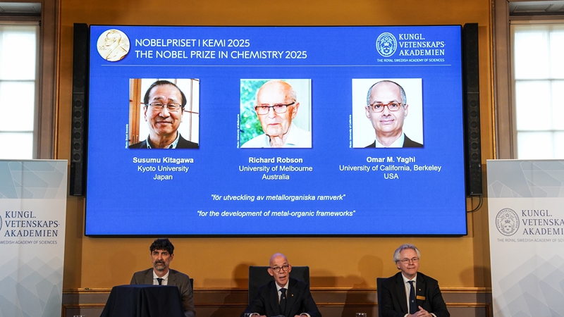 三名科學家因金屬有機框架研究獲2025年諾貝爾化學獎